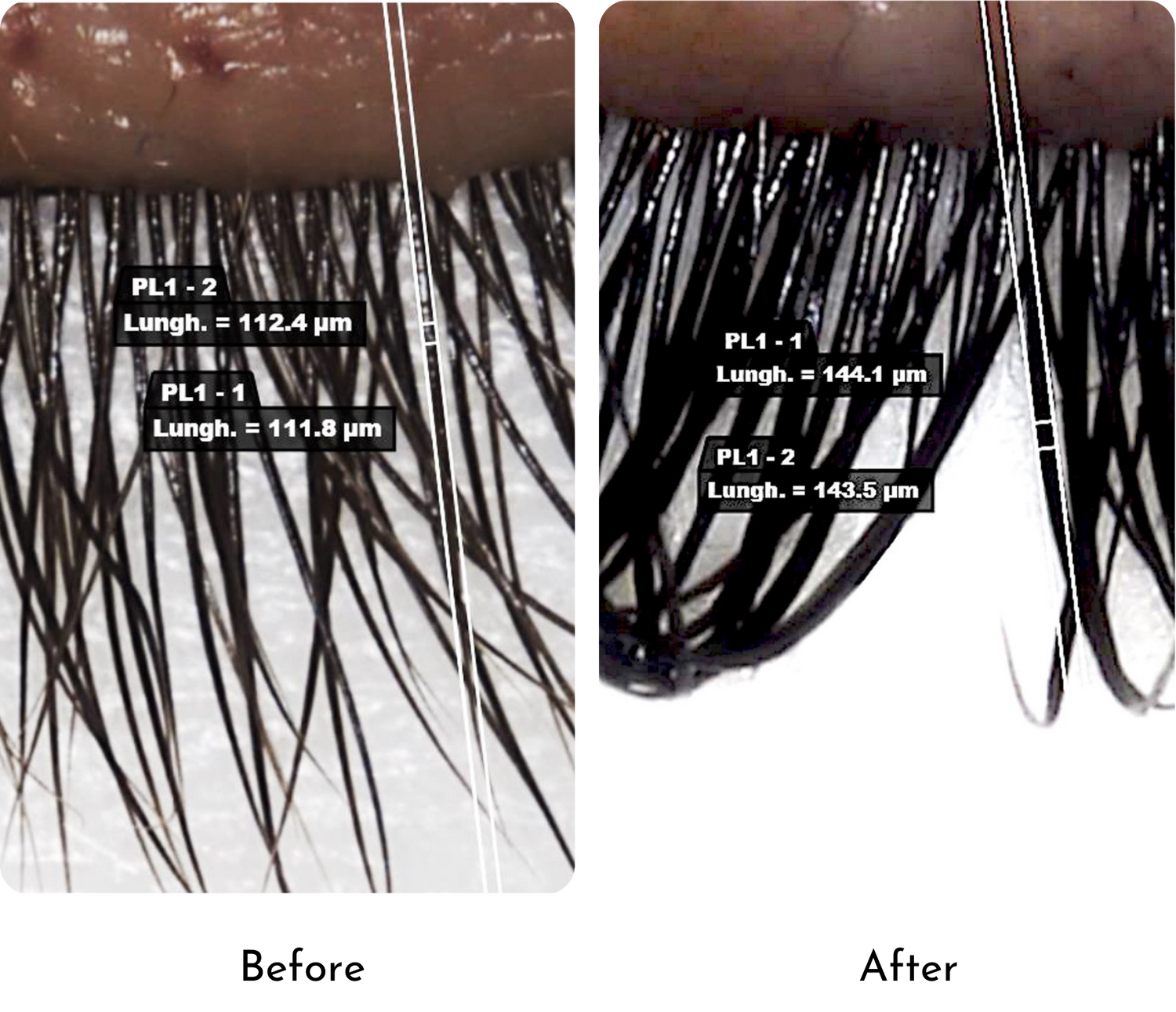 Increased Lash Thickness by 25%, and Lengthening of 9%